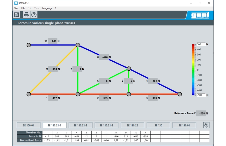 SE 110.21 Forces dans différents treillis plans (Réf. 022.11021)