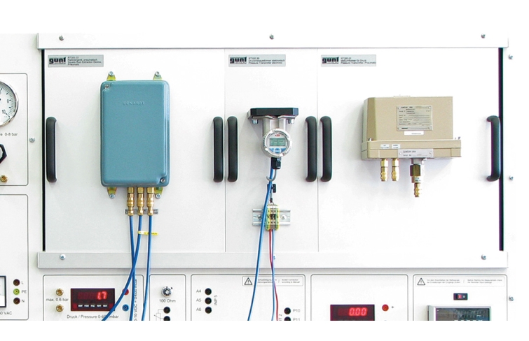 Trois manomètres de pression numériques, un voltmètre, un ampèremètre et un enregistreur à tracé continu trois voies sont disponibles pour mesurer les signaux de sortie des composants de la boucle de régulation.