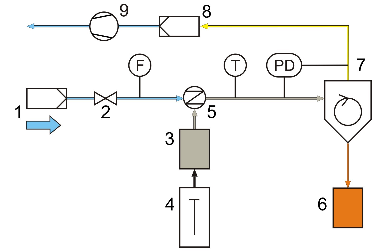Ces fines particules sont séparées de lécoulement dair par un filtre.