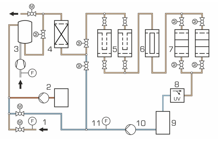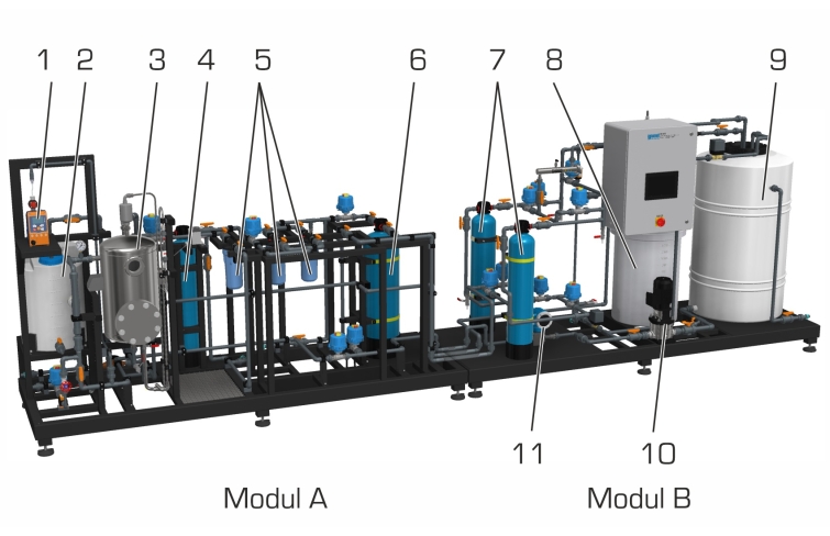 CE 585 Pilote de purification de l'eau type industriel, commande par API (Réf. 083.58500)