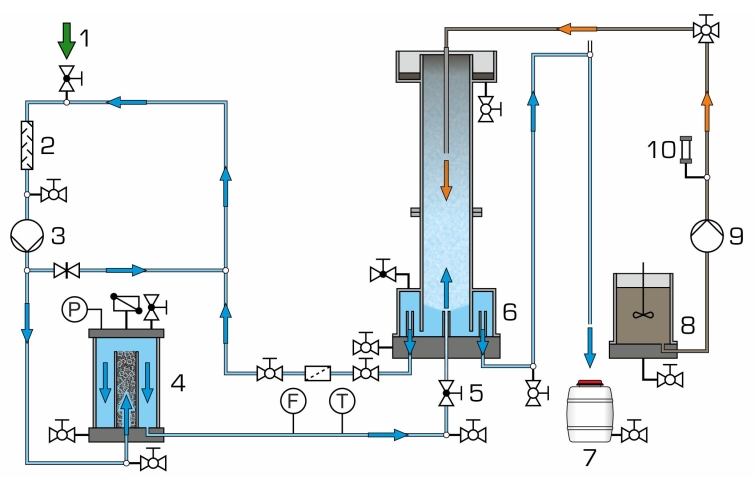 Leau brute est transportée à laide dune pompe et pénètre dans la colonne de flottation par une conduite verticale.
