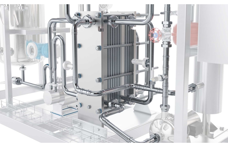 Après une nouvelle augmentation de la pression, le produit est chauffé dans le deuxième compartiment à la température de pasteurisation souhaitée et traverse la mesure de la température enregistrée.