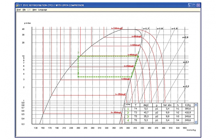 Des points de mesure de pression et de température sont situés sur tous les points pertinents de sorte que les pertes de pression et de chaleur dans linstallation frigorifique puissent aussi être étudiées de manière précise.