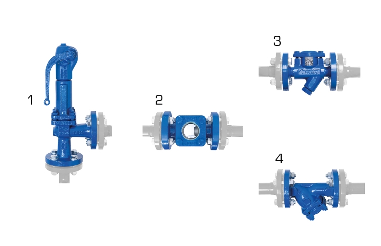 - soupape de sécurité, robinet à tournant sphérique, soupape darrêt, robinet-vanne à coin, robinet à piston, soupape à diaphragme, soupape de retenue, purgeur de vapeur, collecteur dimpuretés, voyant