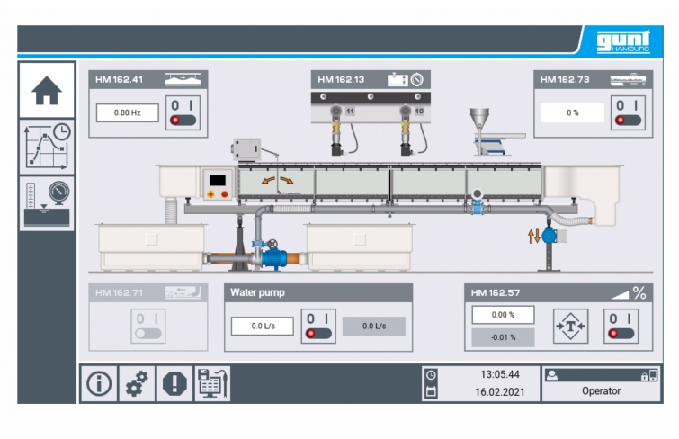 La fréquence de la plaque de refoulement est réglée et directement affichée sur lécran tactile de lAPI du canal dessai HM 163.
