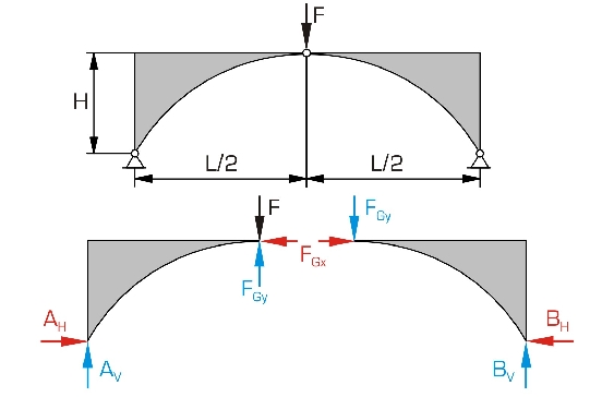 Pour cela, une force de compression longitudinale non négligeable agit dans larc.