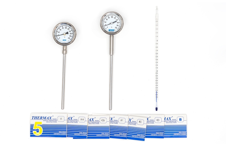 méthodes non électriques: thermomètres à gaz et à liquide, thermomètres à bilame, bandes de mesure de température
