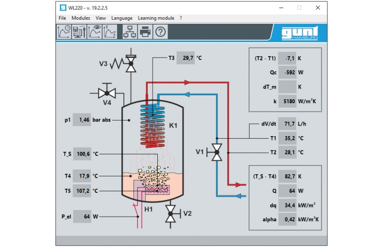 Lappareil dessai WL 220 permet de démontrer de manière claire les procédés débullition et dévaporation.