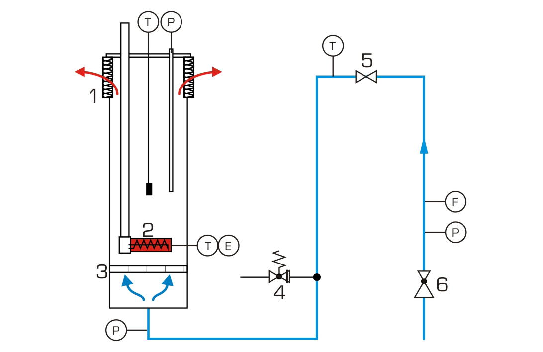 Des capteurs enregistrent la pression à lentrée du réacteur et dans le lit fluidisé, la quantité dair, la puissance de chauffe et les températures à lentrée dair du réacteur, à la surface de lélément chauffant et dans le lit fluidisé.